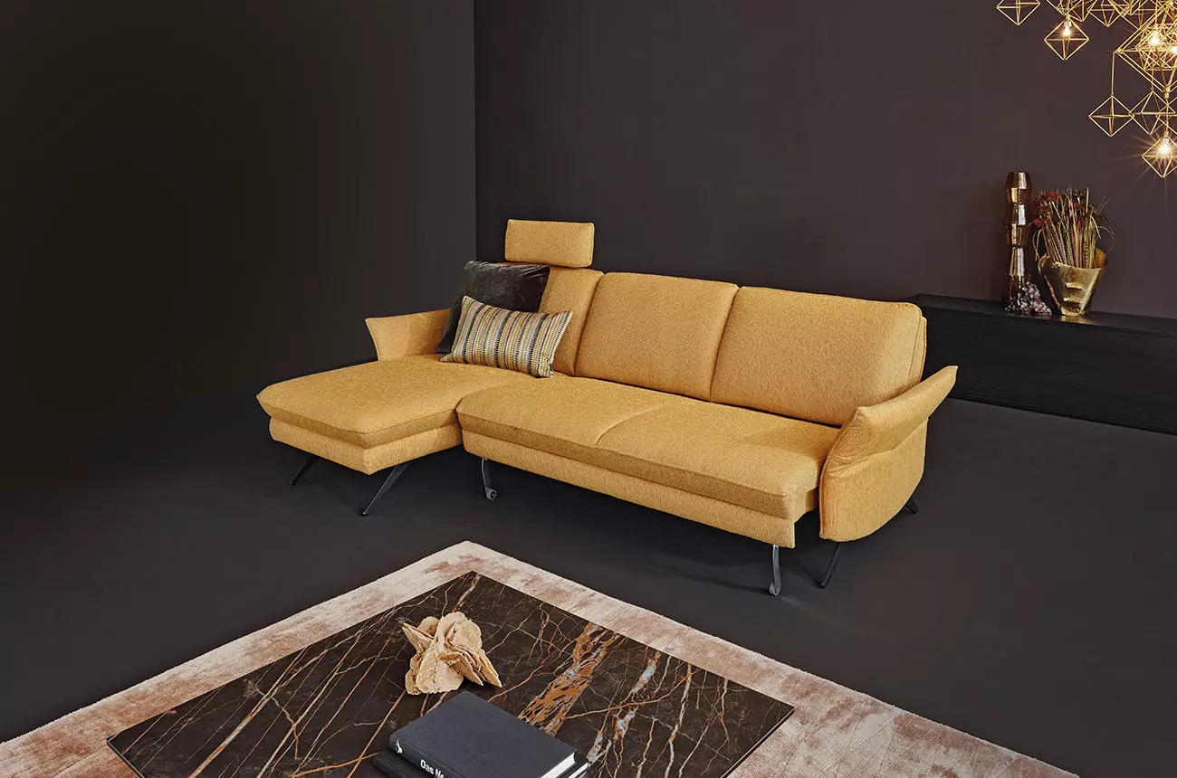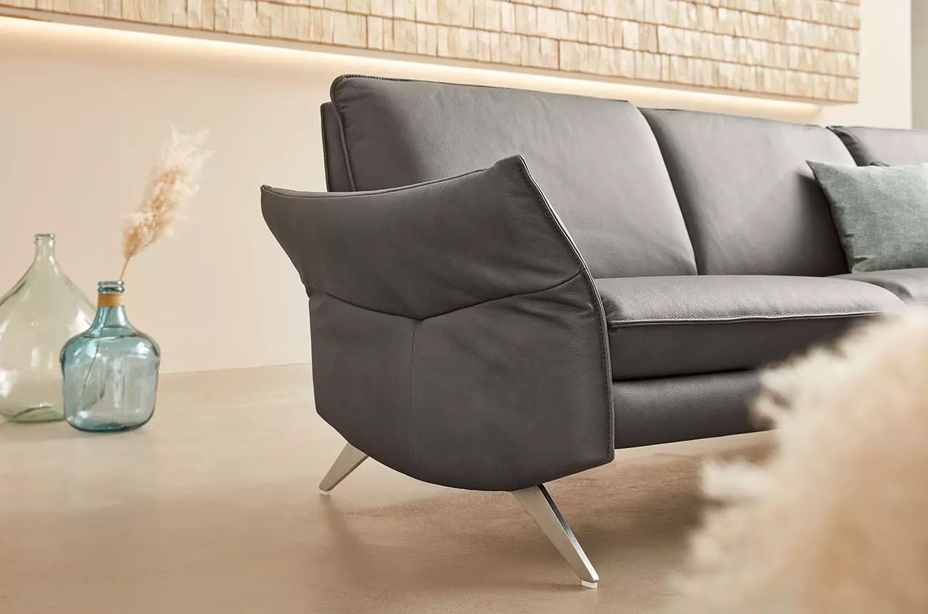 Sur la version manuelle, le dossier se laisse régler à l’aide d’un vérin à gaz en tirant tout simplement sur une dragonne. Vous réglez le repose-pieds par légère pression du corps. Sur la version électrique, le dossier et le repose-pieds se règlent séparément à l’aide d’une télécommande. Pour plus de confort, vous pouvez en option équiper les variantes électriques de vos canapés d’un réglage motorisé des têtières. Ces variantes sont dotées de poches latérales pour le rangement de la télécommande.